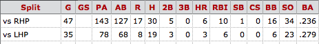 Freeman, along with almost everyone on the Braves, has struggled this season, hitting .251 with nine HRs and 16 RBIs. However his low numbers are mostly due to his problems against right handed pitching (hitting .236 against righties). In 68 ABs against left handed pitching, Freeman is batting .279, just short of his career average of .282. The 26-year old has also hit three of his HRs and six of his RBIs against southpaws, while his 19 hits are tops among left handed first basemen against lefty pitching. His overall numbers are certainly not going to impress anyone. But, based on the pitching matchup, his stats against lefties make him worthy of a spot in your lineup.